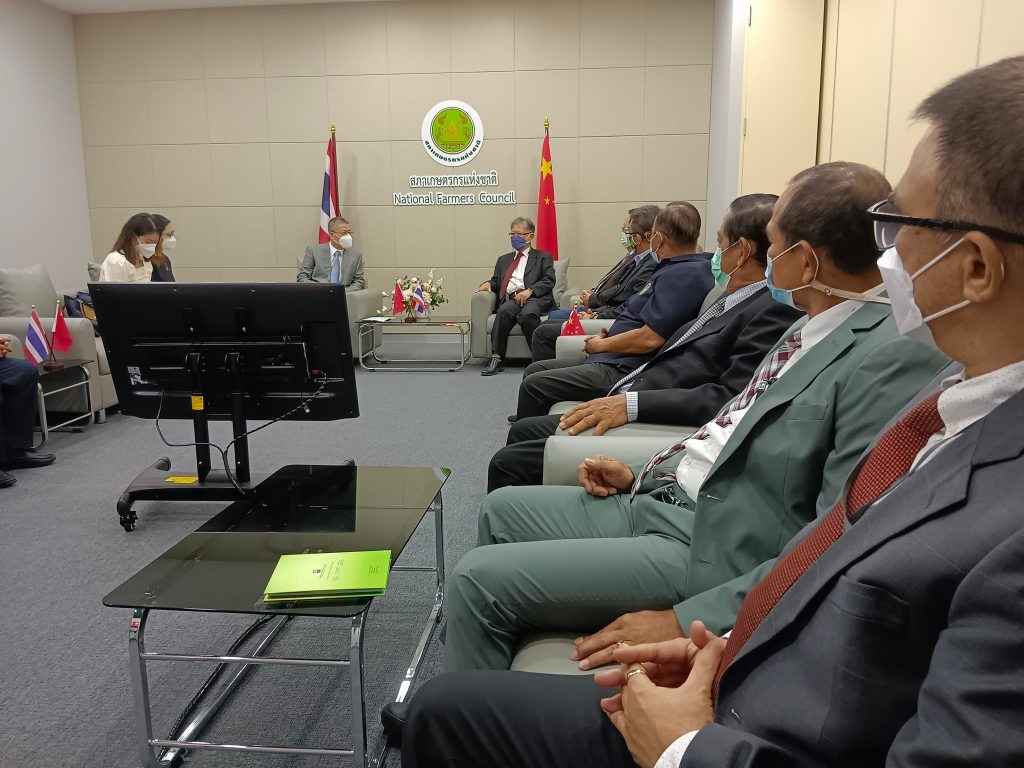 ขณะที่ นายหวาง ลี่ผิง อัครราชทูตที่ปรึกษาฝ่ายเศรษฐกิจและพาณิชย์ สถานเอกอัครราชทูตสาธารณรัฐประชาชนจีนประจำประเทศไทย ได้กล่าวถึงความร่วมมือระหว่างประเทศไทยและจีน ว่า ประเทศจีนกับประเทศไทยมีสัมพันธไมตรีที่ดีต่อกัน มีความร่วมมือกันในระดับรัฐบาล และระดับองค์กร ซึ่งในปี 2564 ที่ผ่านมา การค้าขายสินค้าเกษตรระหว่างไทยกับจีนมีมูลค่า 16,000 ล้านเหรียญสหรัฐ โดยมูลค่าการส่งออกสินค้าไทยไปจีนมีมูลค่าถึง 12,000 ล้านบาท มองว่าการค้าในอนาคตระหว่างไทยกับจีนควรดำเนินการดังนี้
